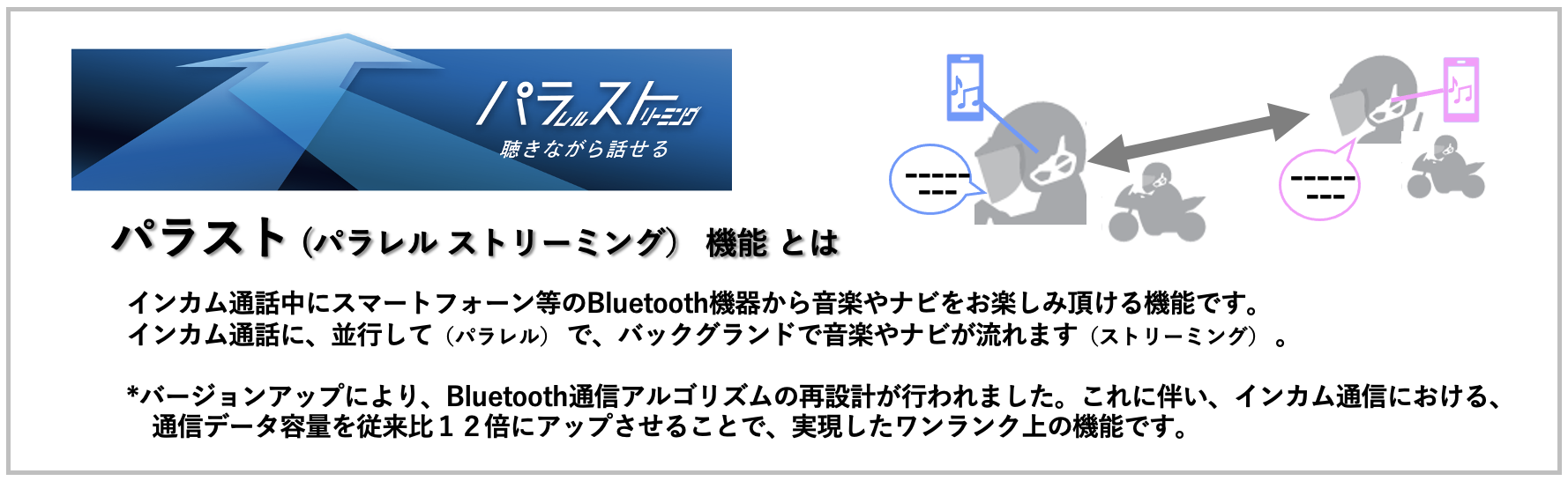 MIDLANDインカム BT R1 Plus にて大変ご好評頂いております、聴きながら話せる [パラスト機能] をBT R1 Advanced においてもお楽しみ頂けるようになりました。