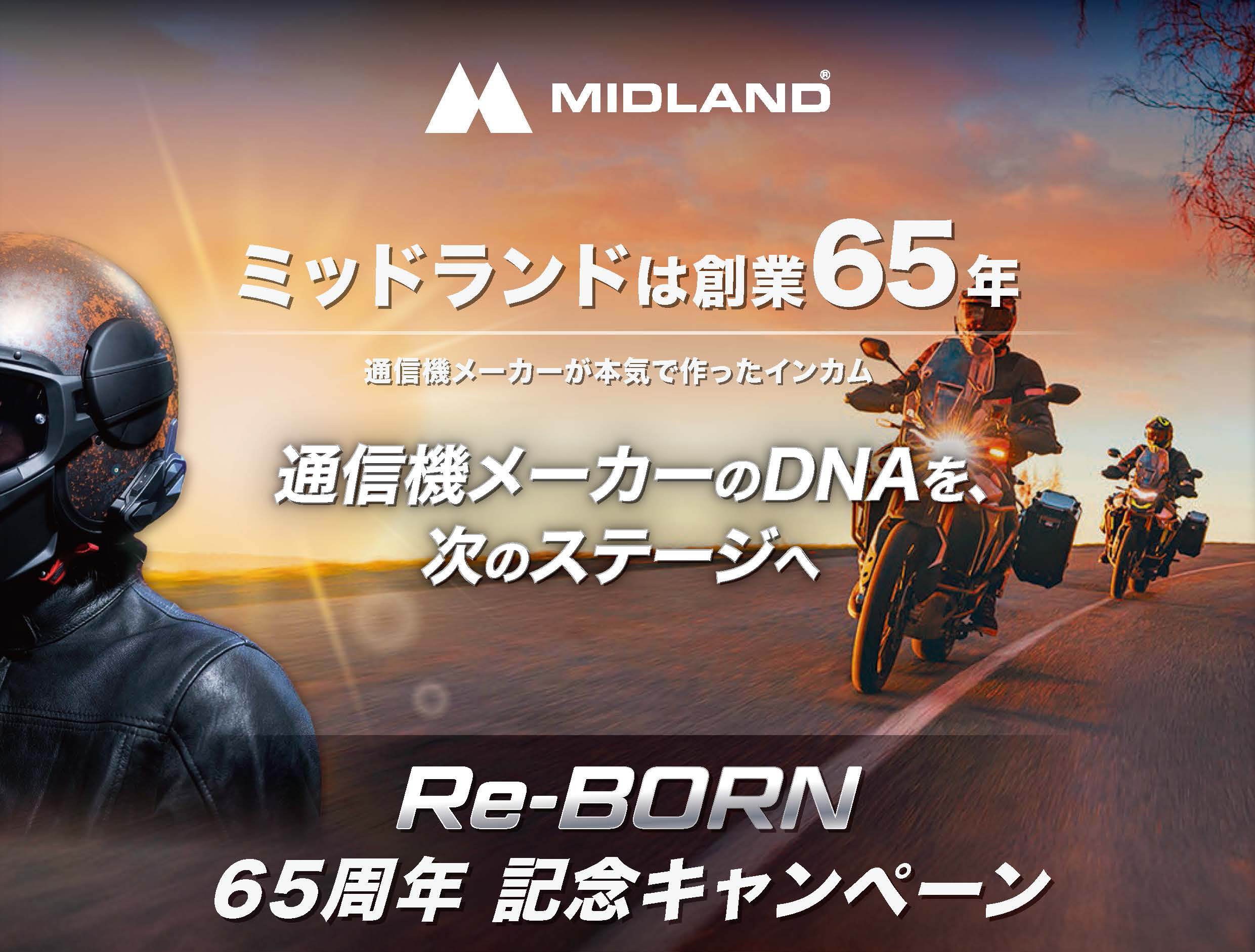 MIDLANDは創業以来、“つながらなければ意味がない”通信の世界で信頼を積み重ねてきた通信機メーカーです。創業65年を機に掲げた「MIDLAND Re-BORN」では、通信の本質を継承しながら、現代のライダーにとってより使いやすく、より安心できるブランドへと進化して参ります。この度、その象徴的な取り組みとして、以下の3つのキャンペーンを展開致します。